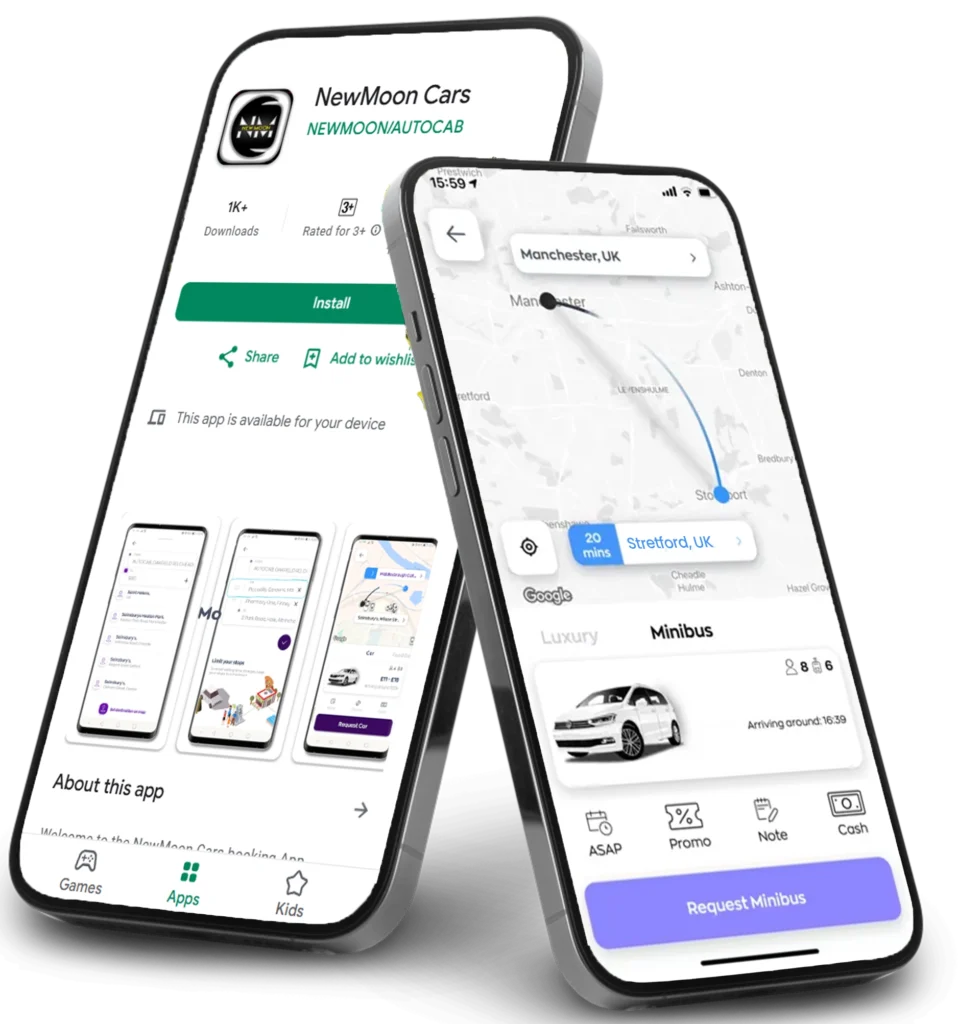 New Moon Cars has been serving Stretford and the surrounding areas with professional, reliable taxi services. Our fleet of well-maintained vehicles and experienced drivers ensures every journey is safe and comfortable. We specialise in local travel, airport transfers, corporate bookings, and minibus services. Book with confidence knowing we value punctuality and customer satisfaction.